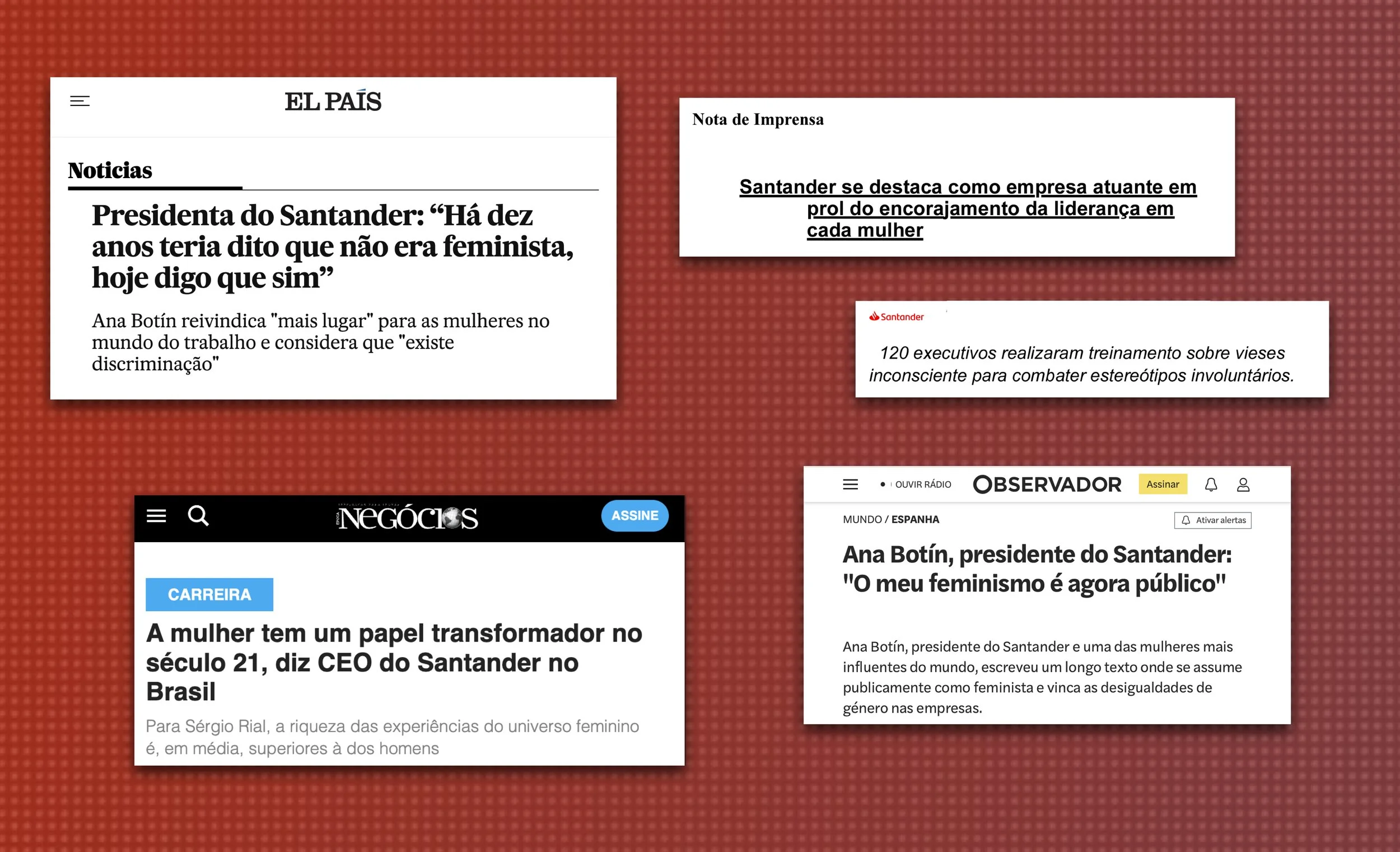 A campanha gerou grande buzz na mídia, promovendo discussões, debates, opiniões e mudanças internas sobre o protagonismo feminino, tanto fora quanto dentro do Santander, com o objetivo de garantir um ambiente corporativo mais igualitário.