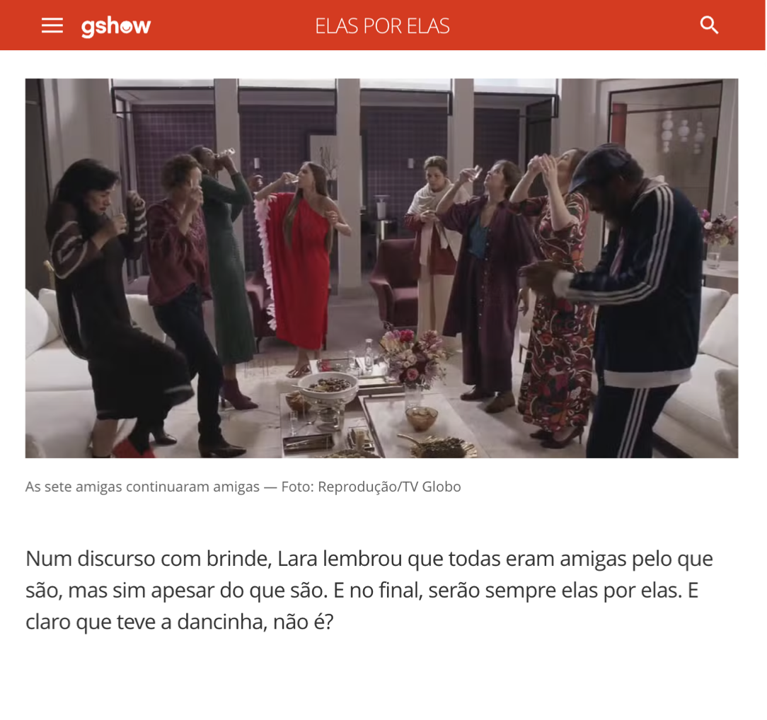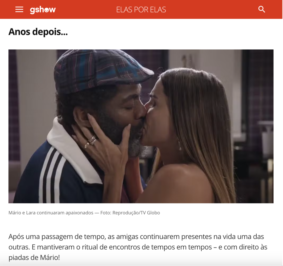 Na releitura da novela ‘Elas por Elas’, da TV Globo, Lázaro Ramos interpretou ‘Mário Fofoca’, um detetive atrapalhado e super carismático. No último capítulo, com a passagem do tempo na trama, uma surpresa: o ator incorporou ao seu personagem a estética, os trejeitos e a essência do icônico ‘Avô’. A transformação trouxe um final surpreendente para o público. E, claro, para todo o time da agência.